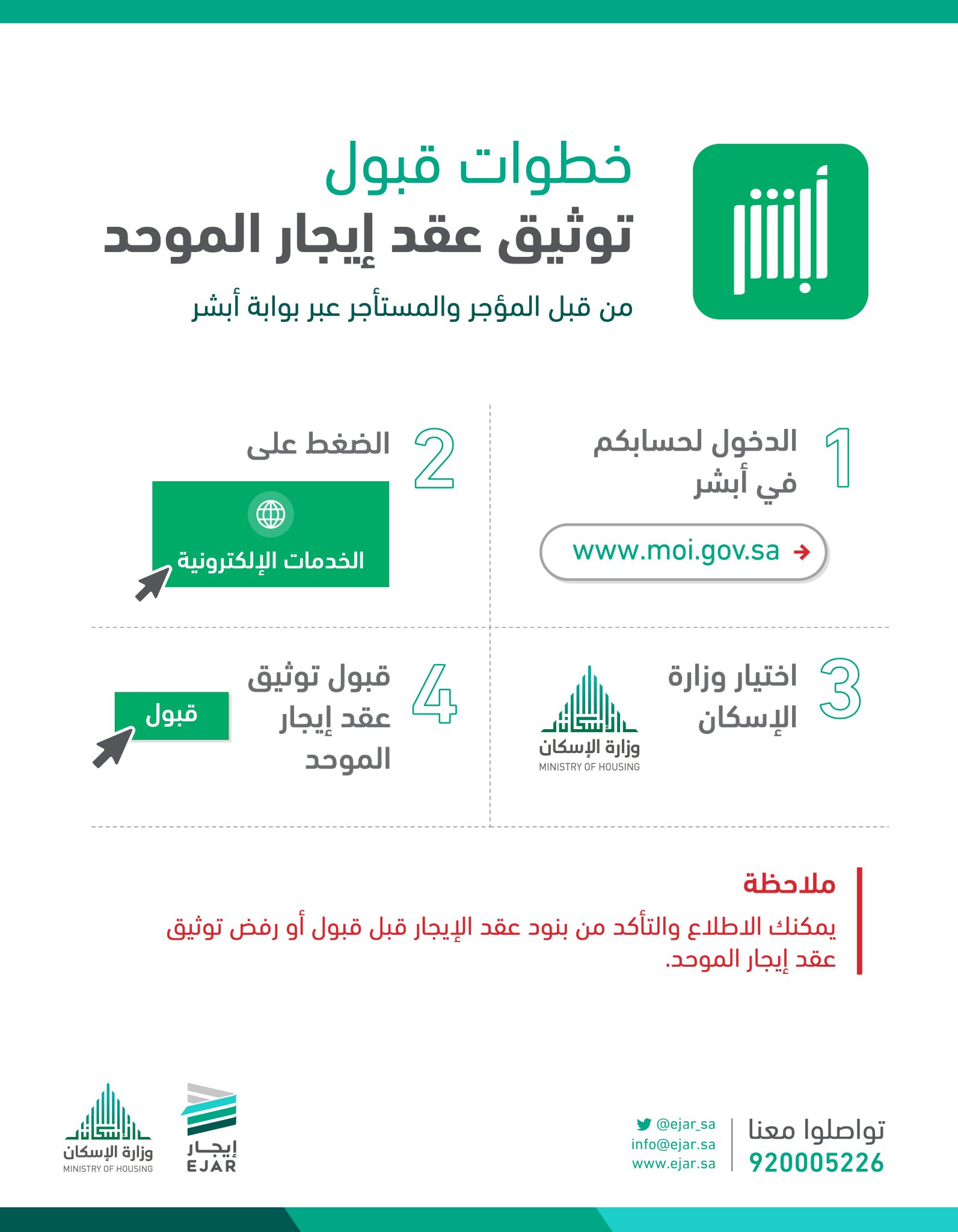 توثيق عقد الإيجار من خلال أبشر. يشار إلى أن الجهات ذات العلاقة بدأت في إجراءات ربط توثيق عقد إيجار الموحد عبر أبشر إلكترونيا فيما لم تحدد المصادر الموعد الزمني للانتهاء من الإجراءات التقنية لتوثيق عقد الإيجار وتأتي هذه الخطوة لحفظ حقوق جميع. لا يلزم التقديم على خدمة تفعيل خدمات توثيق الإلكترونية للحصول على هذه الخدمة. توثيق عقود الايجار الموحد عن طريق ابشر رابط حسابي في بنك باي بال paypal لدعم قناتي https.
