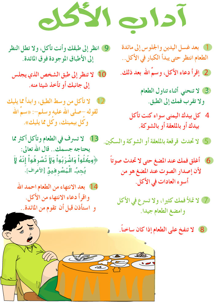 آداب أثناء تناول الطعام والشراب نعمتا الطعام والشراب إن الط عام والش راب. فلاش كارد آداب الطفل المسلم. آداب تناول الطعام بور بوينت zip 13 5 كيلوبايت 1046 مشاهدات من مواضيع أم اللولو. السؤال عن صنف الطعام في حال كان الشخص ضيفا على أحد من أصدقائه أو أقربه.
